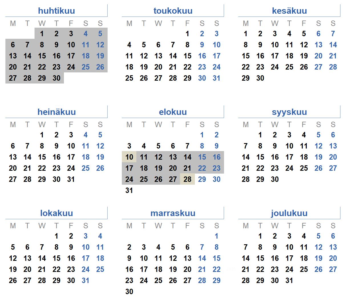–> Tarkista vapaat päivät kalenterista ja ota yhteyttä!